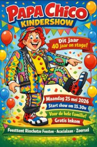 - Maandag morgen beginnen de eerste wandelaars en de fietsers al aan hun tocht. Dit wordt mede georganiseerd door de Natuurvrienden en de Bikers van Zoersel, ten voordele van een GOED DOEL. In de namiddag hervatten de animaties waar PAPA CHICO voor de kleintjes een klassieker is. Om 17u start dan onze 2de grote BBQ.